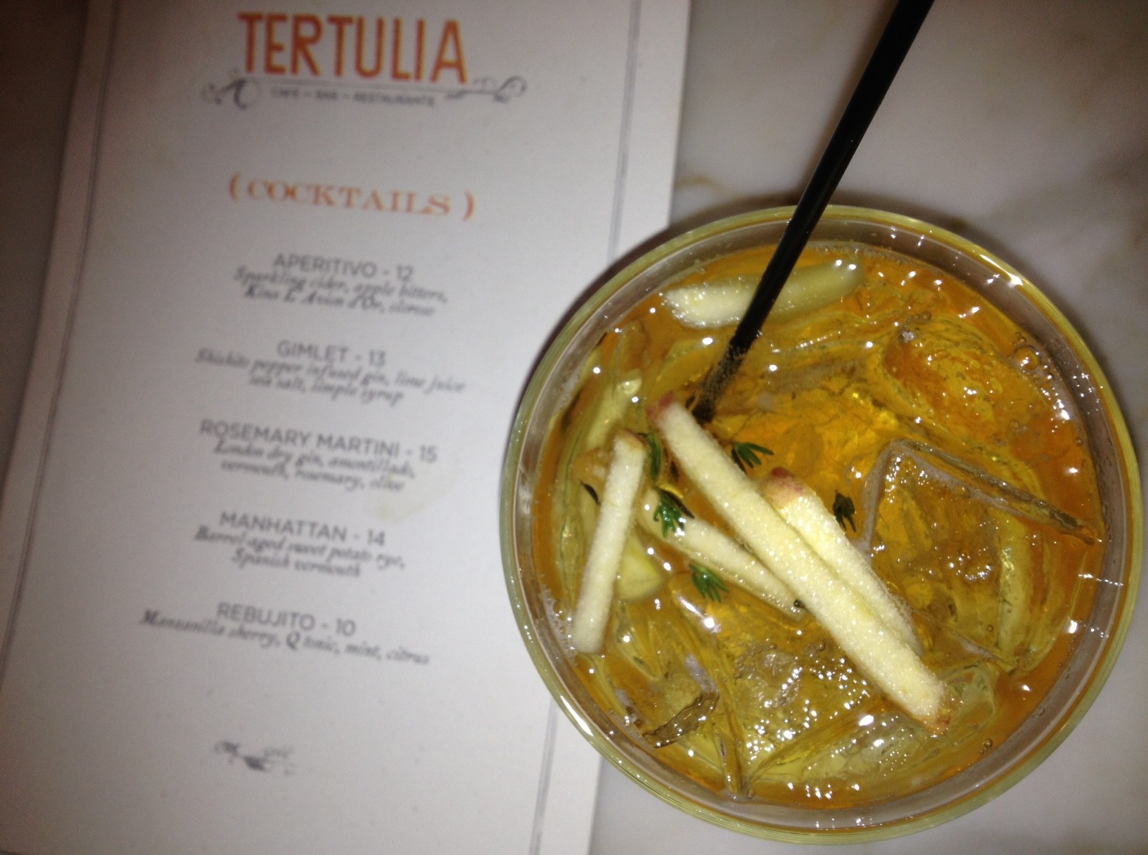 Apples, Cider, Bitters. Aperitivos Nuevo Asturian-style at Tertulia NYC.